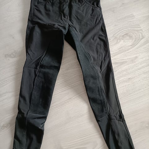 Lasten mustat Back2Back-merkkiset ratsastushousut. Kokomerkintää ei löydy, haara-lahjemitta n. 69 cm.