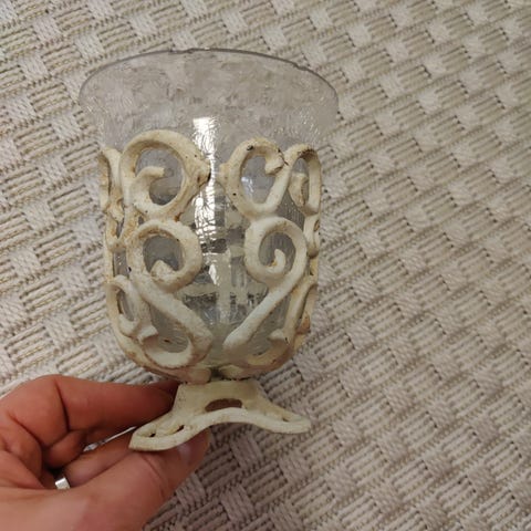 Mukaan saat kuvassa näkyvät tuikun polttamiseen tarkoitetun lisäosan ja kartiomaisen lasikoristeen. Nämä siis irtonaisia