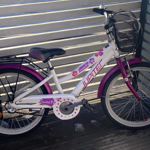 Insera Cindy rengaskoko 20 tuumaa. Pyörä on sinisen värinen ja valmistettu teräksestä. Sopii lapsille, varustettu valkoisilla lokasuojilla ja takatelineillä.