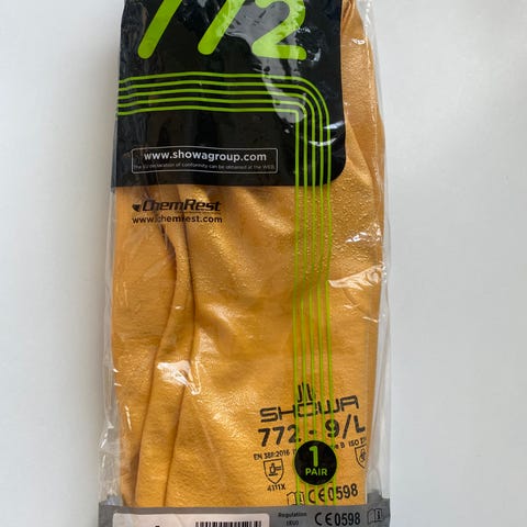 Vain vasemman käden pitkävartinen suojakäsine. Vaikka rännikourujen puhdistushommiin.
