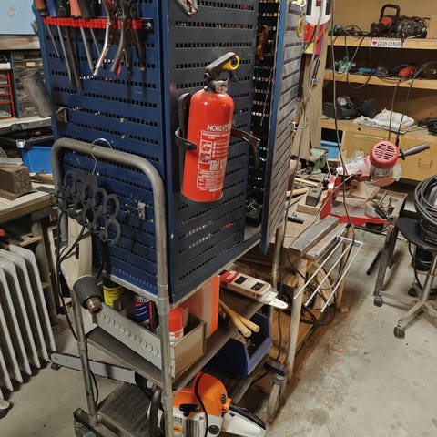 Metallinen työkalukaappi, jossa siniset ovet ja vaalea runko. Kaapissa on useita vetolaatikoita sekä alahylly säilytystä varten. Soveltuu esimerkiksi työkalujen, tarvikkeiden ja pientavaran järjestelmälliseen säilytykseen autotallissa, verstaassa tai varastossa. Mitat 103lev 42.5syvä ja 201kork. Löytyy keimolasta vantaalta