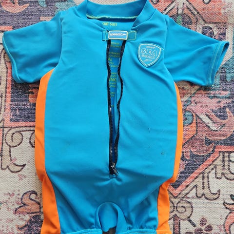 Myydään Speedo lasten kelluttava uima-asu koossa 2-3 vuotta, 15-19kg. Kokopukuinen malli, jossa lyhyet lahkeet ja hihat. Edessä vetoketju helpottamassa pukemista. Meille ostettu uutena ja ehti muutamasti vain päälle. Kunto on siis kuin uusi.
