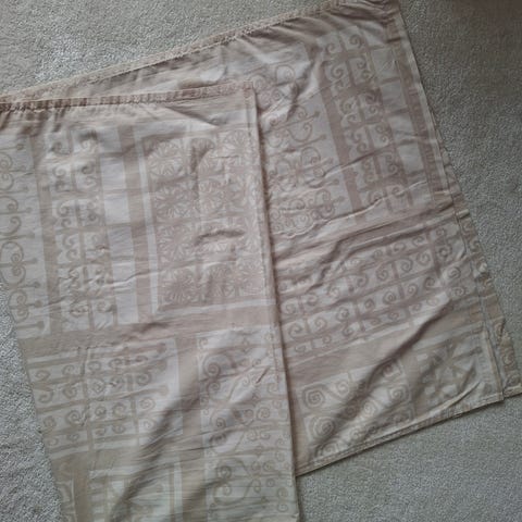 Marimekon kaunis kivet kappa. Materiaali 100% LI. Mitat on 71x151. Siisti ja ehjä muuten mutta yhdessä reunassa pieni rikko kankaassa. Siitä kuva. Valkoisella pohjalla vihreä kuvio. Itsellä samasta kankaasta isompi kappa keittiössä ja tykkään kovasti.
