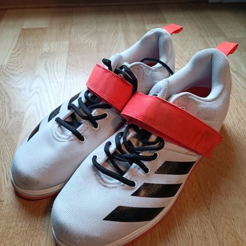 Tästä vähäiselle käytöllä jääneet Adidas Adipower painonnostokengät, koko 44 2/3. Väri valkoinen mustilla yksityiskohdilla. Kengissä on tukeva kantakorotus, nauhakiinnitys ja leveä tarranauha jalkapöydän päällä lisätuen saamiseksi. Päällinen on rei’itetty hengittävyyden parantamiseksi ja sisäosa on pehmustettu. Soveltuvat painonnostoon ja muuhun voima- ja kuntosaliharjoitteluun, jossa tarvitaan jäykkäpohjaisia ja tukevia kenkiä.