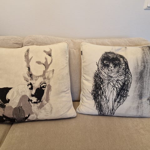 Myydään koristeena olleet Pentikin kissa ja kettu pehmoeläimet. Hinta yhteensä 50e. Kotona ei eläimiä eikä tupakoida.