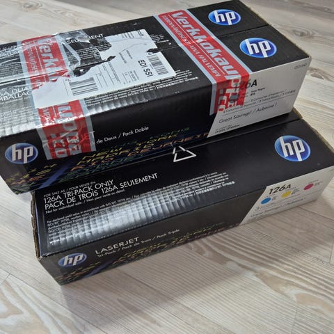 * Kaupan päälle pitkälle käytetyt Cyan, parasta ennen 2026/05, Yellow parasta ennen 2026/12. Annetaan sille, joka ostaa ensimmäisenä jomman kumman edellä mainituista väripakkauksista.