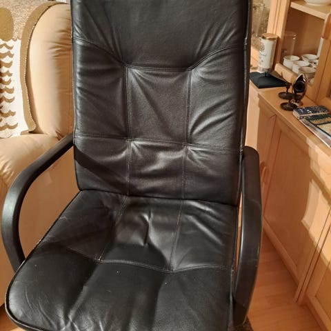Uudenveroinen muovinen musta työtuoli. Istuimen leveys 45 cm syvyys 40 cm, selkänojan korkeus 36 cm. Korkeussäätö 42-54 cm. Nouto Turusta tai toimitus omien menojen mukaan.