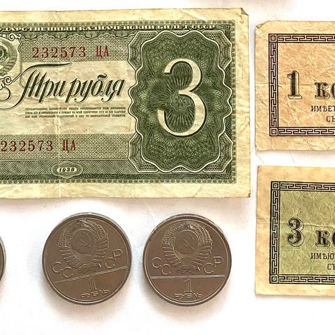 Vanhoja venäläisiä kolikoita: 1-, 2- ja 3 kopeekkaa