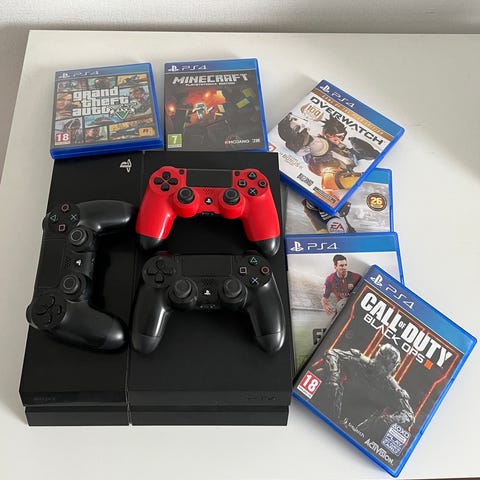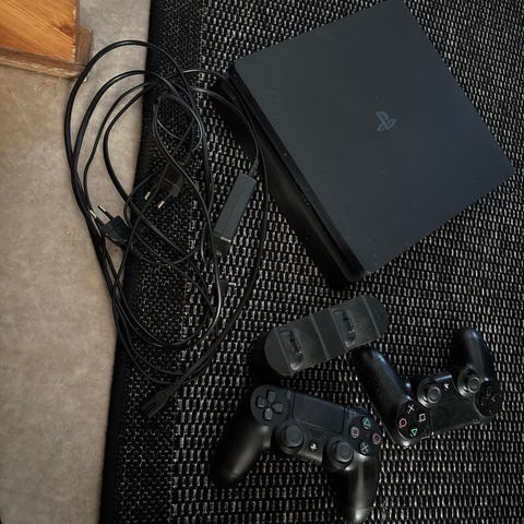 Sony Playstation 4 pelikonsoli musta. Perusmallin PS4-konsoli, jossa etupaneelissa kaksi USB-porttia ohjaimien ja lisälaitteiden liittämistä varten. Takapaneelissa liitännät muun muassa virtajohdolle, HDMI-kaapelille ja verkkokaapelille. "Käynnistyy normaalisti, mutta ei anna kuvaa (HDMI-vika). Myydään ilman kovalevyä tietoturvasyistä varaosiksi tai korjattavaksi." Sisältää hdmi ja virtapiuhan mukana (ei tule ohjaimia mukaan)