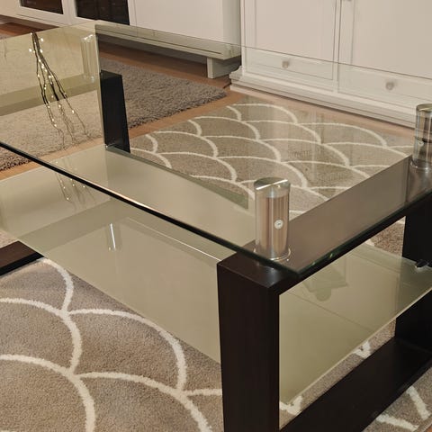 Lasipöytä, messinkinen runko