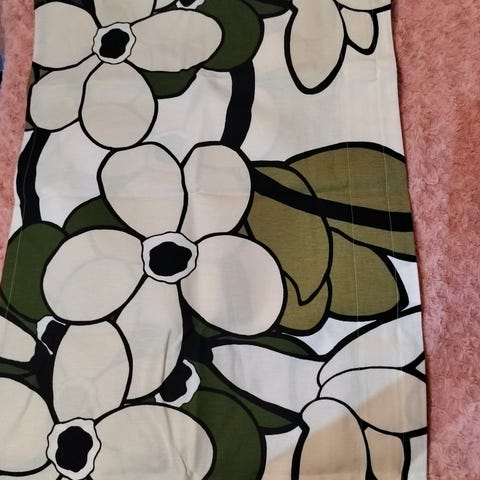 Käyttämätön Vallila Kukkatarha vihreä kappaverho. Koko 60 x 250 cm.
