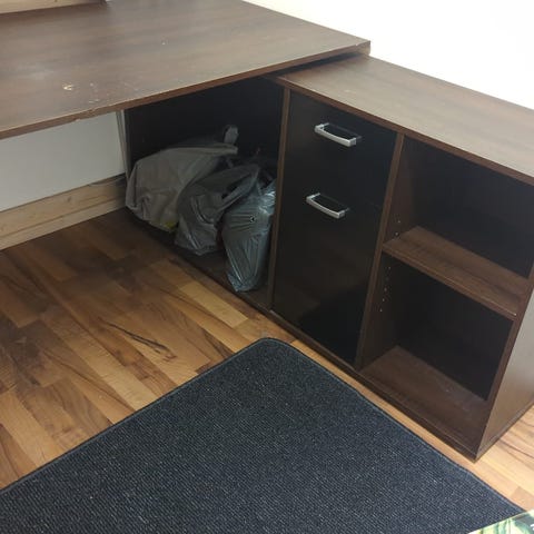 110x55cm työpöytä metalli rungolla. Tasossa pieniä käytönjälkiä.