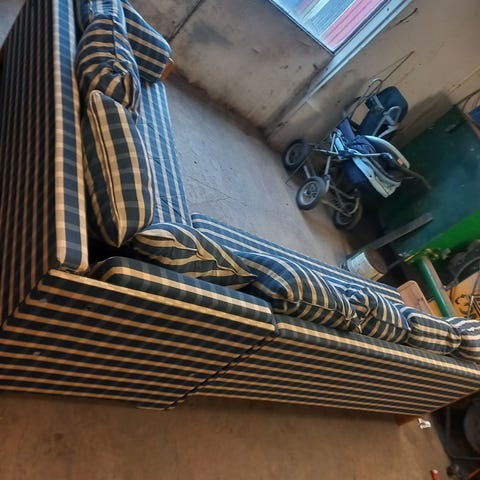 Kulmapaikat ovat hieman painuneet, kun niissä on istuttu eniten. Sohvan yleisilme on kuitenkin. Selkäosan sohvatyynyt ovat irrotettavissa ja niiden päälliset on irrotettavissa.