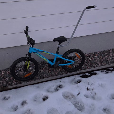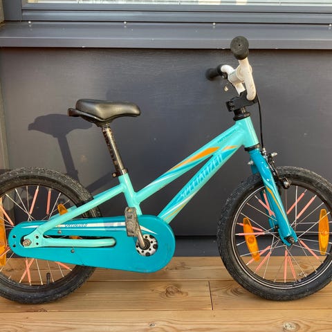 Kelpo kunnossa oleva polkupyörä lapselle. Mukana seisomatuki, tarakka sekä etukori.