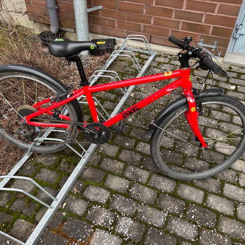 Lasten maastopyörä 24" renkailla. Pyörässä on etu- ja takajarrut, vaihteet (14) sekä maastoon sopivat kuvioidut renkaat. Takarengas juuri uusittu. Pyörässä on heijastimet ja satula on säädettävissä. Väri on sininen, jossa on korosteväreinä keltaista ja mustaa. Pyörää säilytetty aina sisätiloissa, siisti ja hyväkuntoinen pyörä.