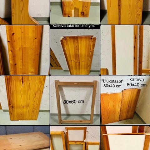 Hyllyt 100x50cm 5kpl, näistä 1kpl sokkelilla ja 1kpl vaatetangolla