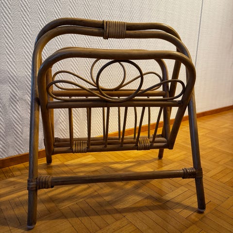 Myydään vanha rottinkinen lehtiteline. On kuin uusi.