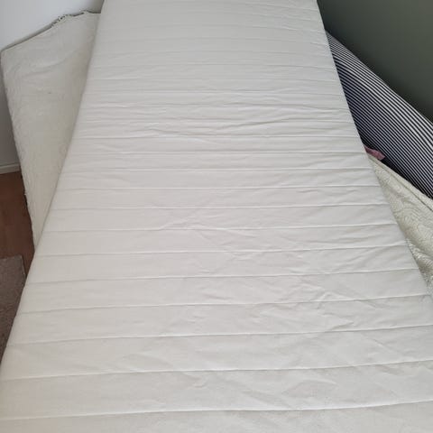 Hyvä käytetty kunto. Pieniä osumia muutama siellä täällä sekä sängyn sivussa pieni halkeama. Patjan koko 180cm x 200cm. Sängyn pituus 206cm ja leveys 185cm.