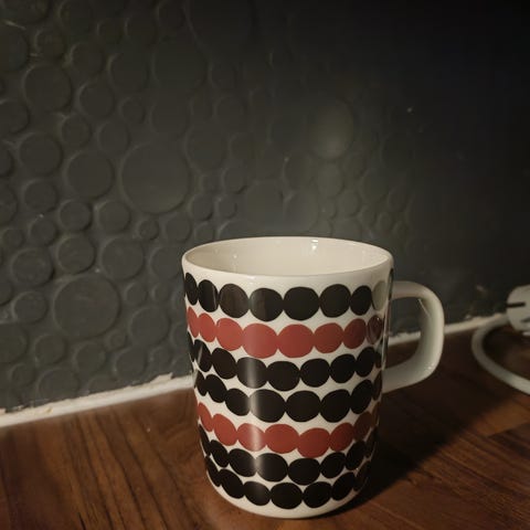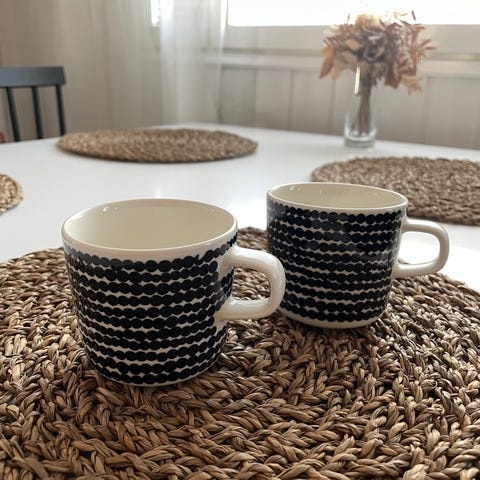 Marimekon siirtolapuutarha mukit, isompi koko. Vähällä käytöllä olleet. Erikseen tai yhdessä.