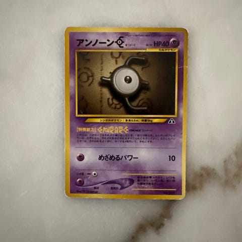 Pokémon Unknown -pokémon-kortti. Kortti on japaninkielinen ja kuuluu Pocket Monsters Card Game -sarjaan. Soveltuu keräilyyn tai pelikäyttöön Pokémon-korttipelissä.