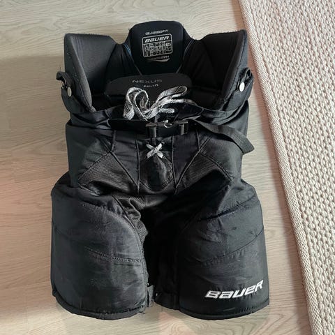 Kuvanmukaiset Bauer Junior Medium jääkiekkohousut. Vähän käytetyt, siistissä kunnossa ja sisältää myös kuvassa näkyvät henkselit. Nouto Inkeroinen.