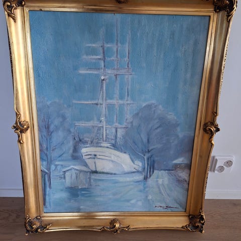 Uusi maalattu taulu, joutset. Akryylimaalaus kanvakselle, mitat 80x60cm, reunat maalattu kultaisella.