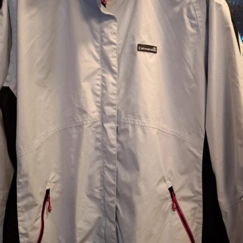 Vyötäröllä ja hupussa kiristysnauha. Valokuvissa, joissa on ihmisen päällä, vyötärönauha on hieman kiristettynä, mut seinallä otetuissa kuvissa vyötärönauha löysimmillään.