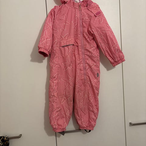 Vettä hylkivä kevyttoppahaalari, koko 92. Muuten siistissä kunnossa, mutta polvissa ja takamuksessa jonkin verran kulumaa. Ei kuitenkaan reikiä tai sen kummempaa, eli hyvin menee vielä ainakin yhdellä lapsella.