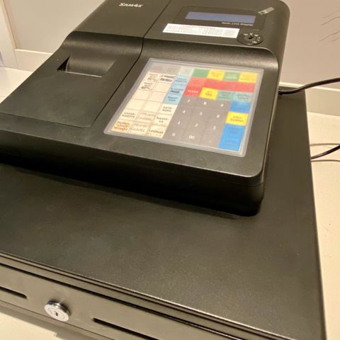 Sam4s kassakone, väri musta. Laitteessa on numeronäppäimistö, värillinen tuotepikanäppäinalue sekä kuittitulostin. Sopii esimerkiksi pienten liikkeiden, kahviloiden tai muiden myyntipisteiden kassatoimintoihin. Mukana virtajohto kuvien mukaisesti.