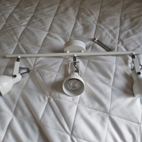 Tuotesivuilla näkyvä musta johtosuoja puuttuu, mutta lampun voi asentaa aivan normaalisti sokeripalakytkentään.