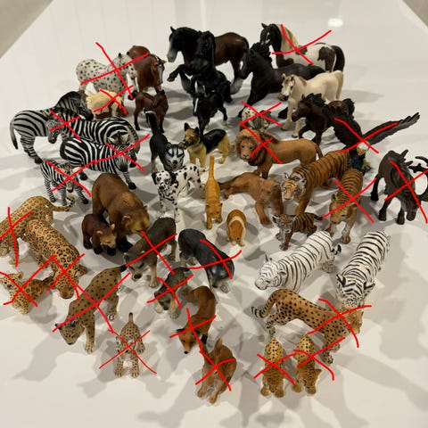 Schleich eläimet 12kpl yhteishintaan 7kpl koiria ja 5kpl villieläimiä. Rahat menee näistä tyttärelle itselleen