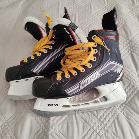 Myydään Bauer Vapor X300 jääkiekkoluistimet. Koko EU 42, sisäpohjan pituus noin 26,5 cm. Mukana teräsuojat. Käytetty, käytön jälkiä on, näkyy kuvissa, kuvat ovat osa kuvausta. Terät ja runko hyvässä kunnossa, luistimet toimivat normaalisti.