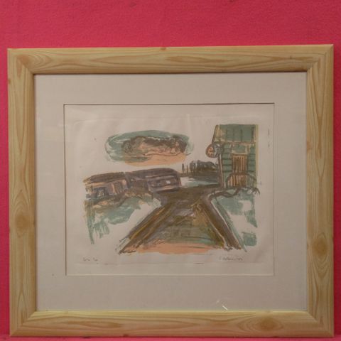 Vihreä työ, sopii hyvin vaikka lastenhuoneeseen. Koko 74,5 x 50,5 kehyksineen). Kehysliikkeen kunnollinen kehys ja paspatuuri, erittäin hyvässä kunnossa. Nouto Espoo Tillinmäki, mobilepay.