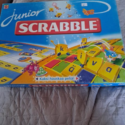 Hyväkuntoinen Scrabble Original sanapeli, Mattel 51278. Ikäsuositus yli 10-vuotiaille, 2-4 pelaajaa. Pelivälineet hyväkuntoiset ja ehjät, myös pelin laatikko hyvässä kunnossa. Ainoana miinuksena pelilaudan alapuolella hieman vaaleaa tahraa, tämä omana kuvanaan. Tarkempia tietoja pelistä näet ilmoituksen kuvista.