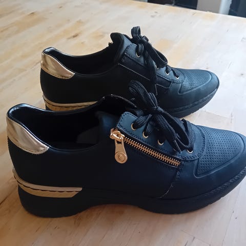 Rieker tennarit, koko 41. Mustat kaupunkilenkkarit, joissa valkoinen ulkopohja. Erittäin hyväkuntoiset ja vähän käytetyt.