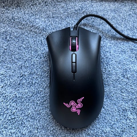 Razer DeathAdder Elite pelihiiri. Langallinen USB-hiiri, väri musta. Hiiren muotoilu on oikeakätiselle sopiva ja siinä on useita ohjelmoitavia painikkeita sekä rulla. Pohjassa on optinen sensori ja teflonjalat liukumista varten. Liitäntä tapahtuu USB-kaapelilla. Kaapelissa on punottu pinta, joka näkyy kuvissa kuluneena. Sopii käytettäväksi tietokoneen yleishiirenä ja pelaamiseen.