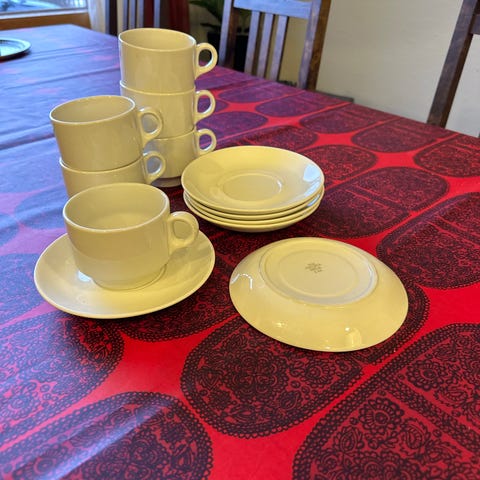 Arabia valkoinen kahvikuppi ja aluslautanen
