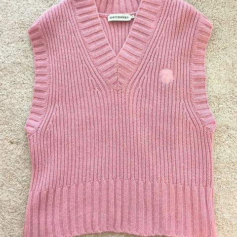 Marimekko neuleliivi naisille, koko S. Väri vaaleanpunainen/vanha roosa. Sen verran reilua mitoitusta, että itse M-kokoisena olen käyttänyt eikä ole pieni. Käyttökerrat max 5