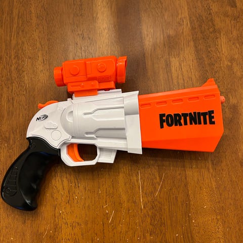 Nerf-lelupyssy, Fortnite-mallia. Koko n.73cm. Tietääkseni hyvässä/kohtalaisessa kunnossa (myyn ystäväni lapsen leluja).