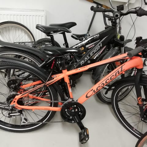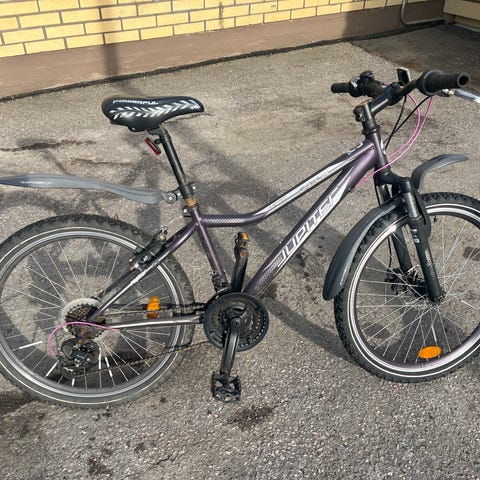 Crescent Bikerz polkupyörä, koko 24 tuumaa ja 7-vaihteinen. Väriltään vihreä runko, valkoinen satula ja mustat lokasuojat sekä tavarateline. Pyörässä on etuvalo ja heijastimia. Renkaat ja pyörä muutenkin erinomaisen hyvässä kunnossa.