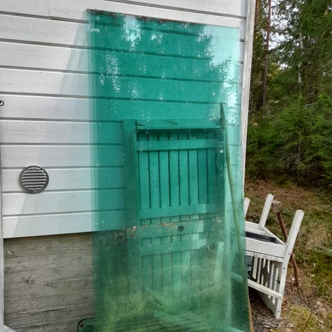 Lasikansi, savunharmaa/musta. Kuvissa mitat/koko.. Hinta 30e