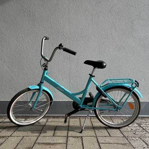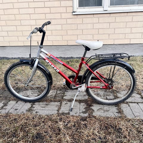 Nopsa lasten polkupyörä, jossa 20" renkaat. Pyörä on oranssi mustilla yksityiskohdilla. Varusteluun kuuluu takatavarateline kuormansidontahihnoilla, lokasuojat sekä seisontatuki. Jarruina on vannejarrut edessä ja takana. Soveltuu lapselle, jolle 20" kokoinen pyörä on sopiva.