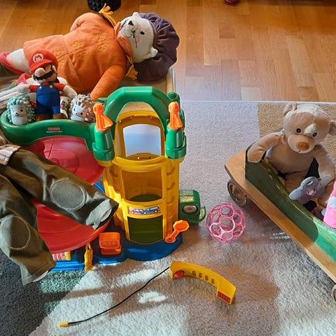 Annetaan muovinen astia esim. taikahiekka-leikkeihin, ainakin meillä ollut siinä käytössä. Koko n. 30x39cm.