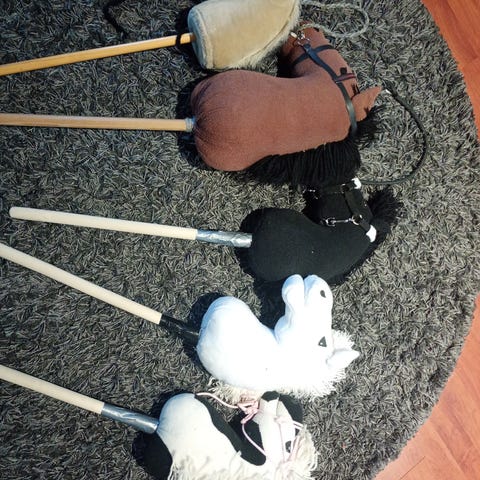 Myydään monenlaista tavaraa kepparille, mm. harjoja, loimia, ohjat.