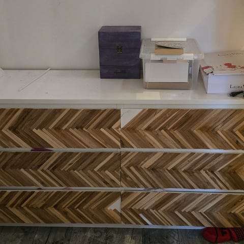 Lahjoitetaan edestä valkoiseksi maalattu kaappi. Tämä oli tarkoitus laatoittaa päältä, joten siksi maalattu vain edestä. Laadukas.