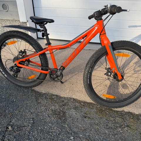 Scott Scale Disc 24” lasten MTB. Shimano Tourney TX 1x8 vaihteet käsivaihtajalla, SR Suntour joustokeula, Tektro levyjarrut edessä ja takana. Hankittu uutena 2021, säilytetty kesät katoksessa ja talvet varastossa. Käytön jälkiä mutta kaikki toimii. Uusi satula, kahvakumit ja renkaat juuri vaihdettu. Nastarenkaat mukaan kaupan päälle.