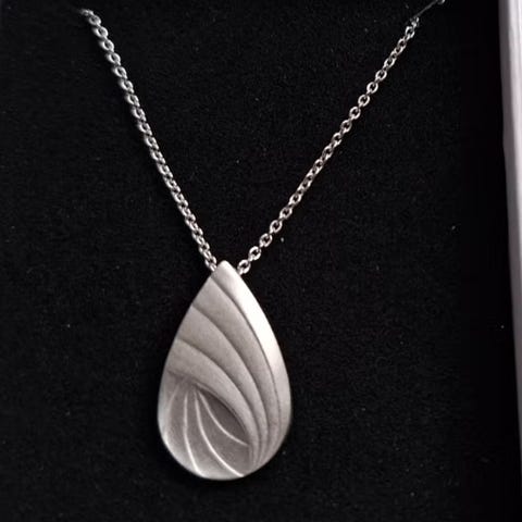 Ammattilaisen valmistama kaulakoru Tähkä-hopalusikasta. Riipus hopeaa, ketju kirurginterästä. Riipuksen pituus 3.5cm. Ketjun pituus 60cm.