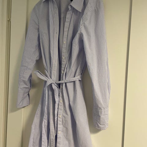 Tommy Hilfiger naisten mekko (RIBBED POLO FIT AND FLARE SWEATER DRESS), koko M. Sininen, ribbineulosta muistuttava joustava materiaali. Lyhyet hihat ja kauluksellinen pääntie, edessä nappi yläosassa. Helmassa lievästi levenevä malli. Pituus mitattuna olkapäästä helmaan noin 95–96 cm (kuvassa mittanauha). Sopii arki- ja työvaatteeksi tai siistimpään pukeutumiseen.