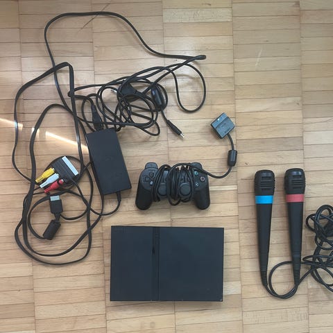 Sony PlayStation 2 pelikonsoli musta. Klassinen kotikäyttöön tarkoitettu viihdekonsoli, johon voi liittää yhteensopivia ohjaimia, muistikortteja ja muita PS2-lisävarusteita. Soveltuu PlayStation 2 -pelilevyille ja tukee myös DVD-levyjen toistoa mallista riippuen. Musta väri, perinteinen vaakamallinen runko.