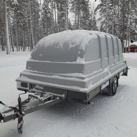 Jarrullinen O2 luokan kuomukärry. VM.2021. Suurin sallittu kokonaismassa 1500kg. Varusteltu kahdelle moottorikelkalle.